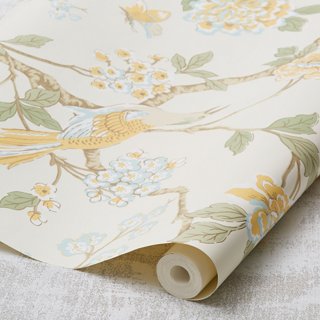 Description: Fanciful Wallpaper Pastel Yellow Wallpaper Wall Decor
